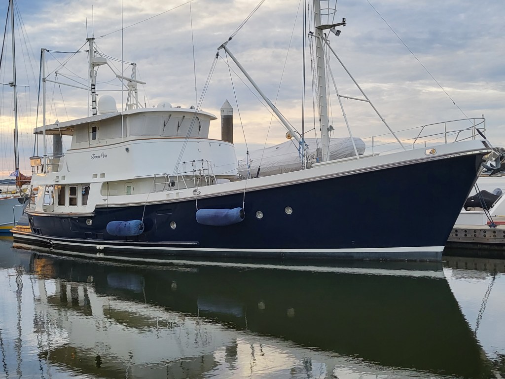 Griffin had her original 1985 vintage Volvo diesels when we made the trip back in 1997. Back then engines smoked and smelled. Every day we had to wash the transom to get the soot off after a day running on the ICW. Eleanor was repowered in 2002 with the then current state of the art in Yanmar diesels. No soot. No smell. I’ve heard that diesel engines have come even further in the two decades since our Yanmars came out, but we are content with what we have.
