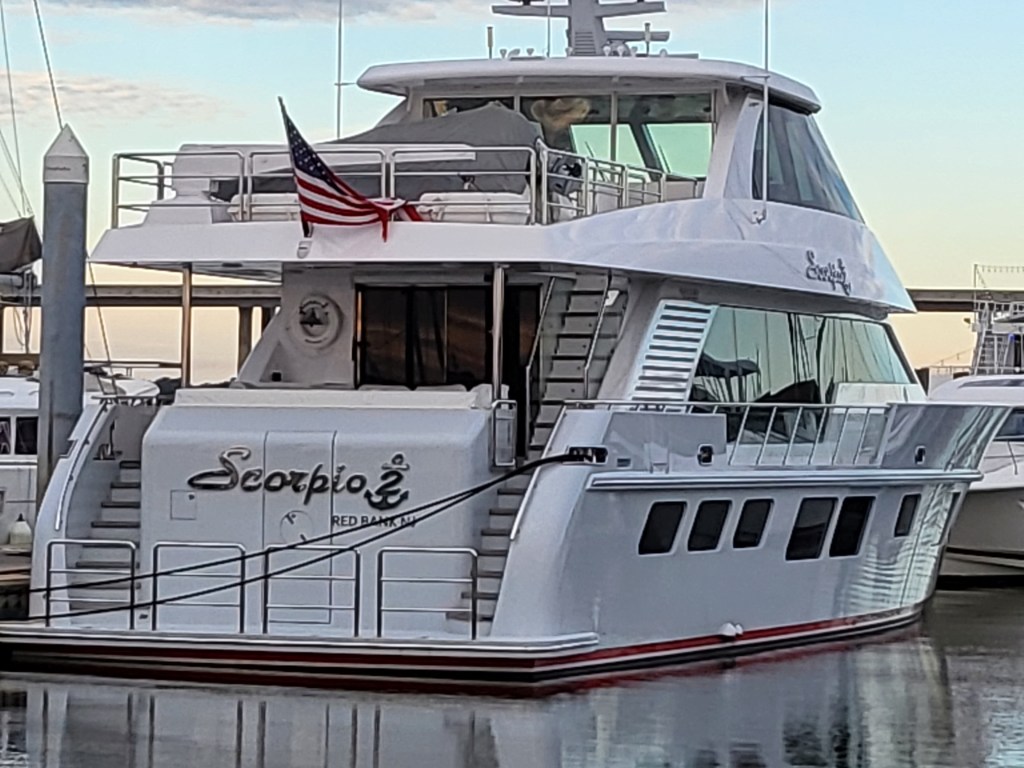 The Mega-dock hosts many mega yachts! She is nestled between a 60+ foot sage-colored sport fishing yacht whose captain sits in mahogany seats, above thick, luxuriously appointed, spotless fiberglass, and a triple-decked Azimut 50 fly. Across from us is Bonne Vie, a Nordhaven 62, and in front of her is Scorpio, 90 foot Hargrave. All of these vessels are worth two, three, maybe four million. Jon often jokes that we paid less for Eleanor than the taxes on our neighboring floating mansions.