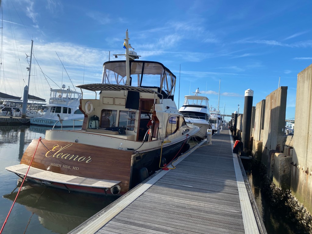 Thanks to the crew who helped with the preparation for the journey as well as the onboard crew for the voyage. Jenn was our human autopilot, taking frequent extended turns at the helm. Craig was our CHENG – Chief Engineer — handling pre-underway engine checks every morning and coordinating the shift from shore power to ships power, and back again every day, plus numerous jobs during the year-long renovation of Eleanor. Terese managed all aspects of the voyage, from taking her turns at the helm, including driving Eleanor out into the Atlantic Ocean for the first time, to selecting marinas and restaurants and keeping us all fed and happy. More than a First Mate, she was active as Co-Captain and Cruise Director.