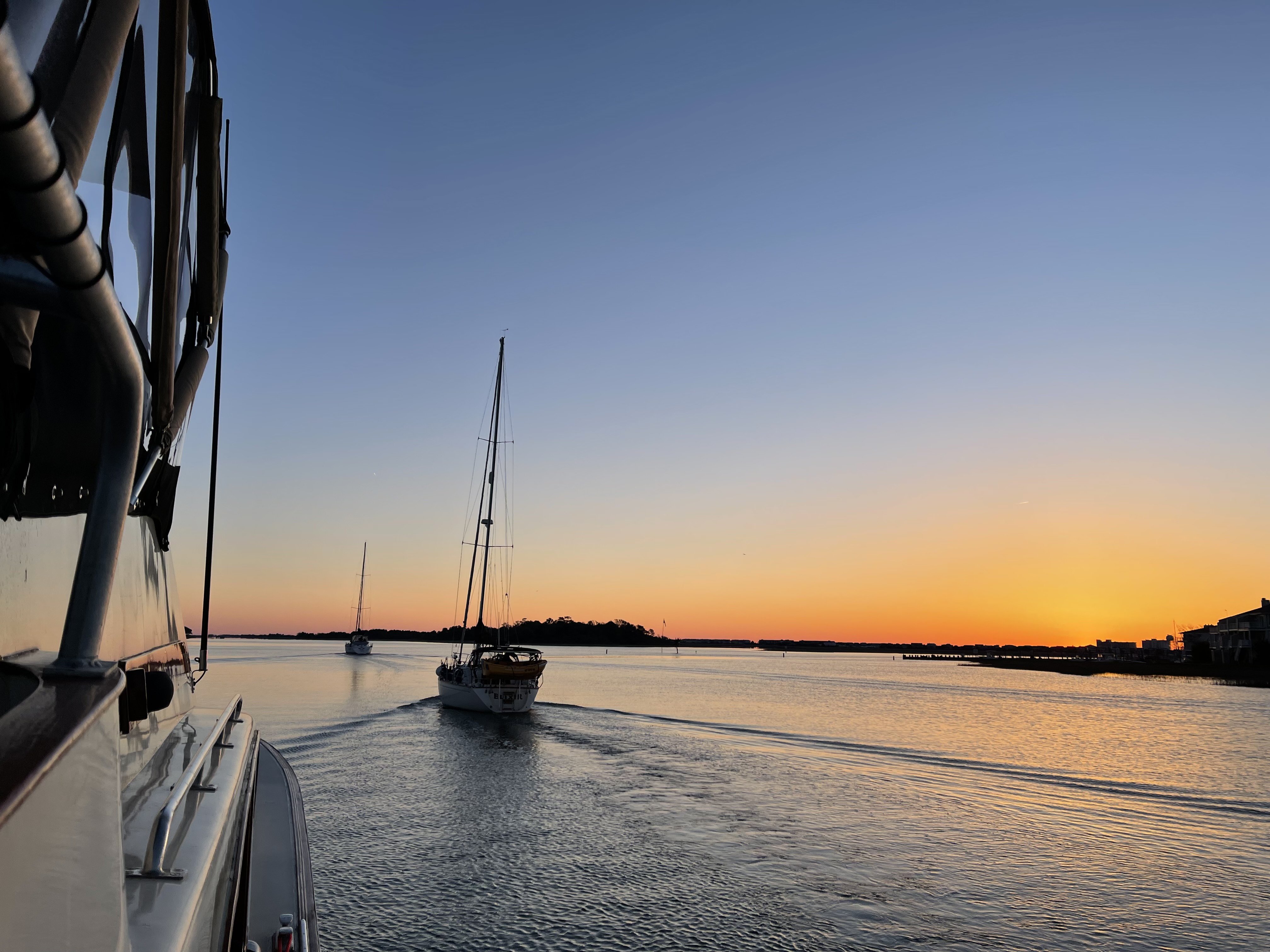 Passages are a treasured time. Bringing Eleanor’s dear soul back from her relatively brief time swooning in Charleston’s rich atmosphere is an opportunity to disconnect from all those things that occupy and nag the mind most days, while one sets about with a singular purpose of getting from point A to point B. During a passage, the experiences in point A are imprints of fond memories that help build the anticipation of new memories to come at Point B. Being asked to help make the passage is a gift, and Michelle and I jumped at the chance given to us by Jon and Terese, although we knew we would not fully be able to shed the nagging everyday work routine completely.