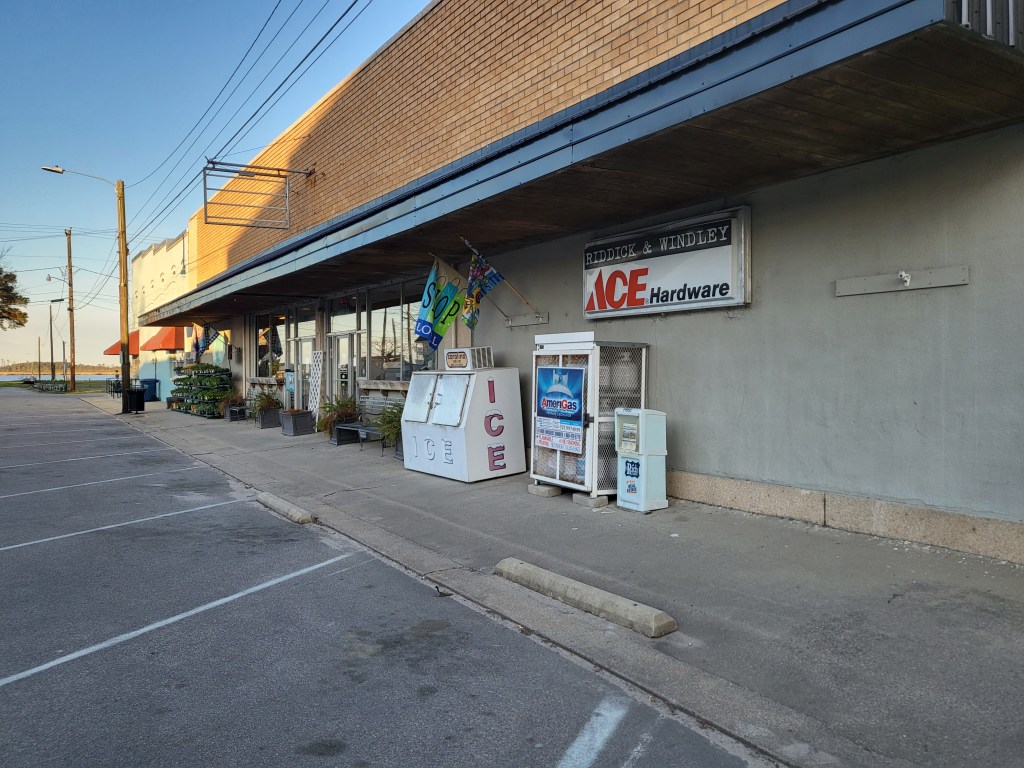 Storefronts under rehab The Mayberry of 2022 doesn’t throw you back so far as to be inconvenient. The eclectic and comprehensive ACE Hardware can accommodate any practical or impractical need. I know this because it’s where you must purchase a token to activate the marine self-serve pump-out station. As a woman who is excited at the notion that her hometown ACE sells women’s sized gardening gloves, you can imagine my delirium when I discovered a whole women’s department featuring blousy, gauzy tops and t-shirts, arranged by color and size. There were even some of those crafty wire and slate and mineral-type earrings and beaded necklaces expertly displayed on delicate hooks—a fine femme distraction from the paint aisle.