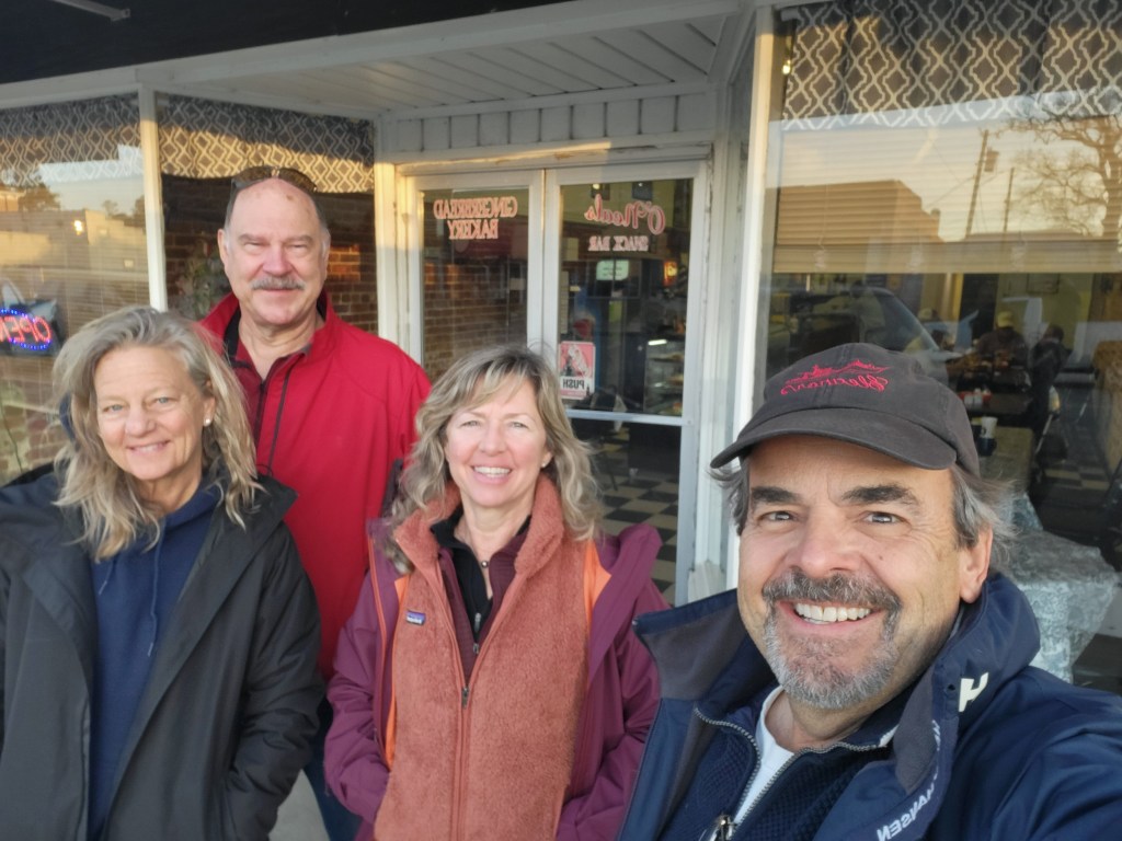 Tuesday morning brought the early opening of Gingerville Bakery, which Brad says is owned and operated by an 82-year-old woman named…wait for it…Ginger. We ordered three dollar and fifty cent steak and egg sandwiches, omelets, and hash browns, and were romanced by the biscuits as well as the locals, who clearly each had a permanent, assigned-by-time seat at the middle table, where they could shout out greetings and wise cracks to townspeople who had less time to loiter.